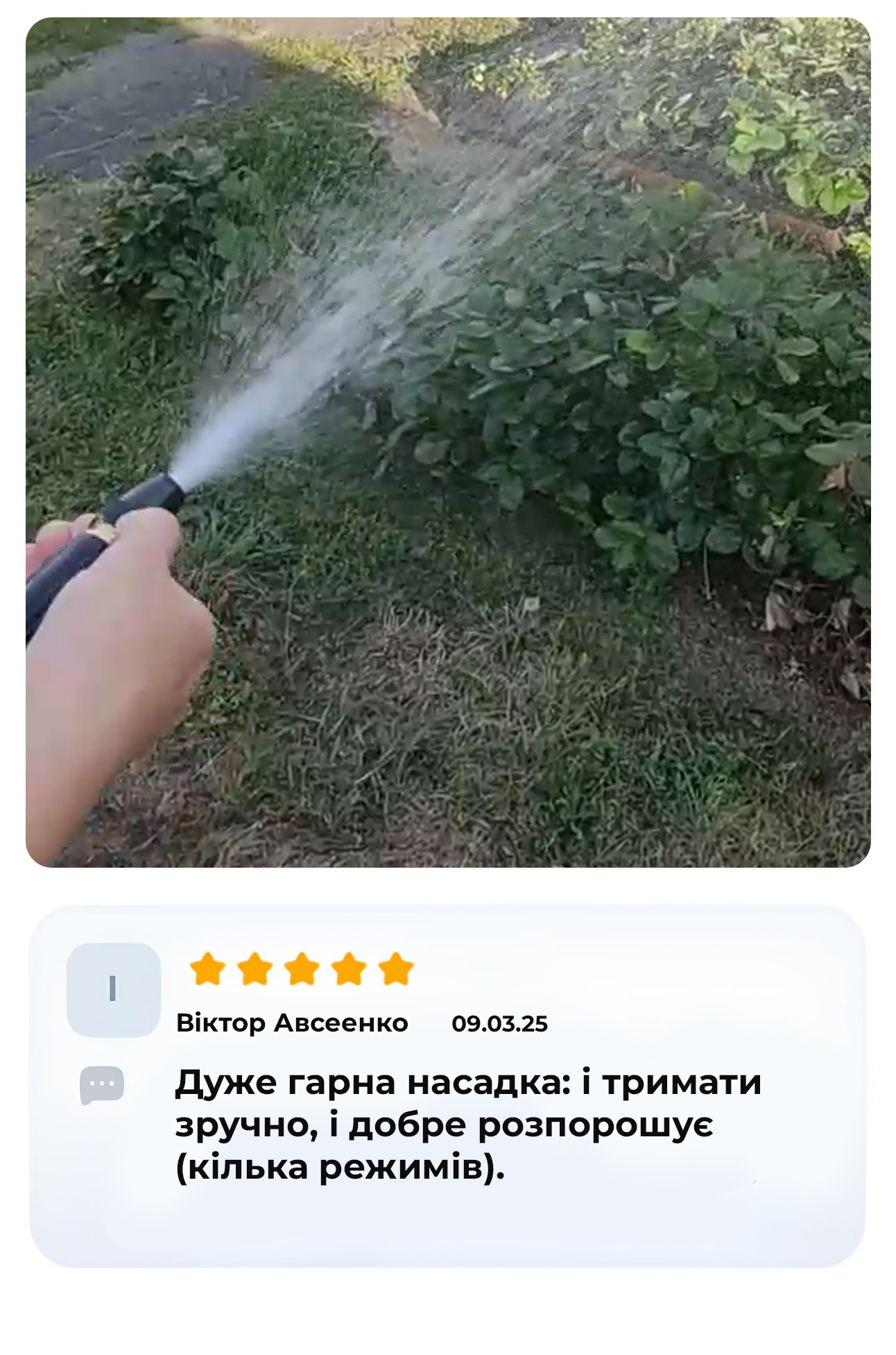 Насадка оснащена регулюючим колесом, що дозволяє швидко і легко перемикати силу напору в один рух.